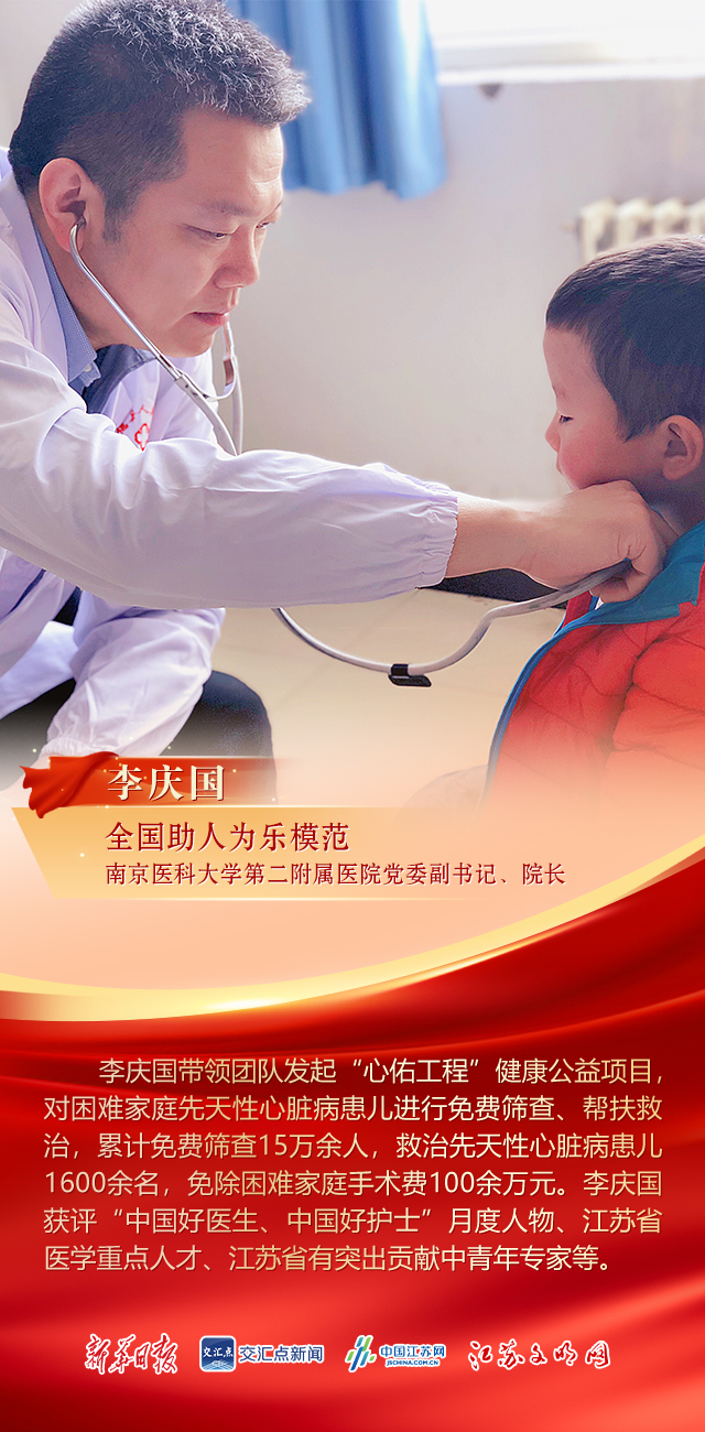 其中,我省推荐的南京医科大学第二附属医院党委副书记、院长李庆国,南京农业大学教授、中国工程院院士盖钧镒,张家港市南丰镇新德村村民殷志兰3人被授予第九届全国道德模范荣誉称号;吴凯、秦凯、缪梅清、李庾南、谢茗、钟佰均、严慧7人被授予第九届全国道德模范提名奖。