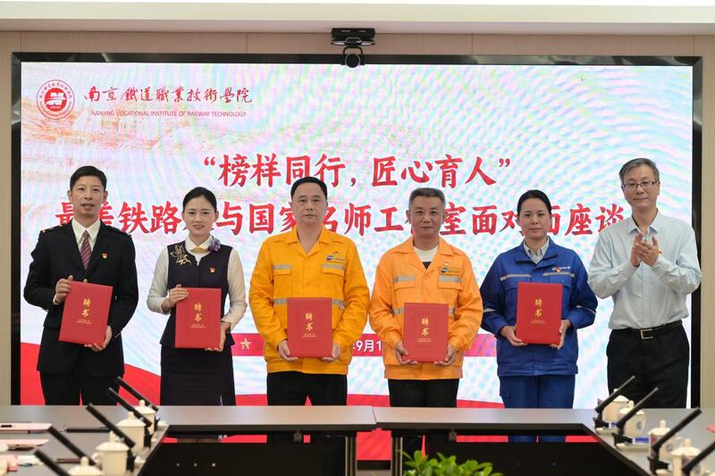 9月19日下午,由中央宣传部宣传教育局、中国国家铁路集团有限公司党组宣传部共同主办的第七届“最美铁路人”先进事迹报告团走进南京铁道职业技术学院,与刚刚获评2025年“全国最美教师”称号的南京铁道职业技术学院薄宜勇教授领衔的国家名师工作室团队成员一起,举行了一场以“榜样同行,匠心育人”为主题的座谈会,开启了铁路高职院校双师“最美组合”合作育人的新篇章。