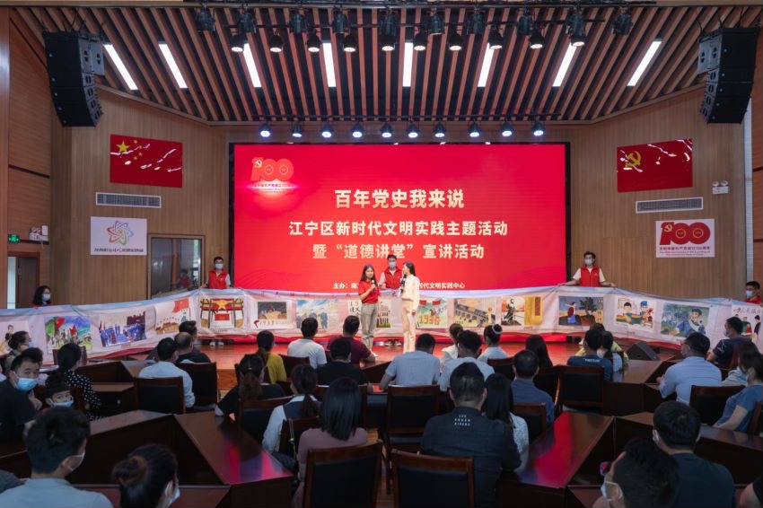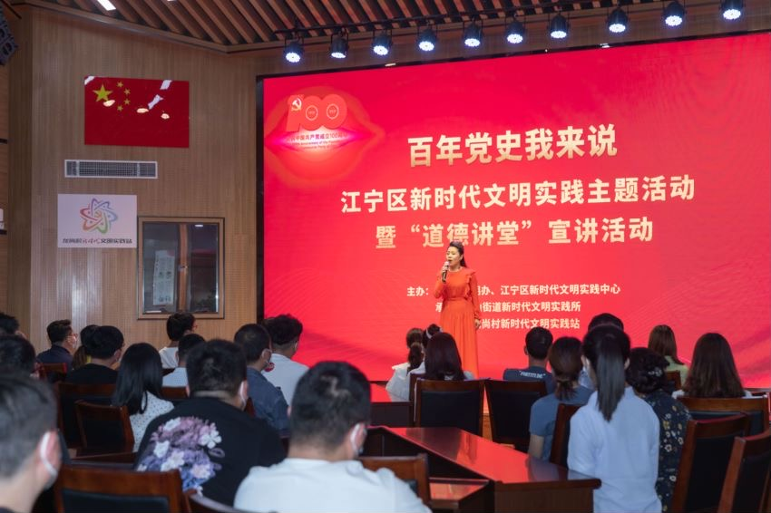 5月9日上午,“百年党史我来说”南京市江宁区新时代文明实践主题活动暨“道德讲堂”宣讲活动在汤山街道龙尚村新时代文明实践站举行,活动以分享雨花英烈故事、传唱红色歌曲等形式,表达对母亲的感恩和对祖国对党的热爱。