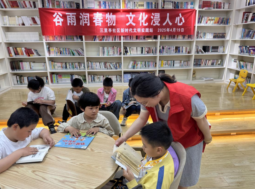 暮春时节,雨生百谷。为弘扬中华优秀传统文化,让青少年沉浸式感受节气魅力,近日,南京市溧水区洪蓝街道三里亭社区新时代文明实践站开展“谷雨润春物 文化浸人心”主题活动,通过知识讲解与阅读体验,让传统文化浸润青少年心田。