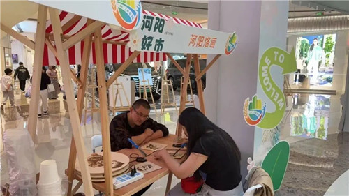 “刚开始用力不均匀,颜色就有深浅,多尝试几次就好了。”在非遗代表性传承人的指导下,市民沉浸式体验了河阳烙画的魅力。一幅幅色彩鲜艳、充满乡村气息的农民画,以独特的艺术魅力吸引市民的目光。来自连云港赣榆区石桥镇官庄小学“张闻明乡村学校少年宫”的学生诗歌、钉线画展,也引来大家纷纷驻足欣赏。