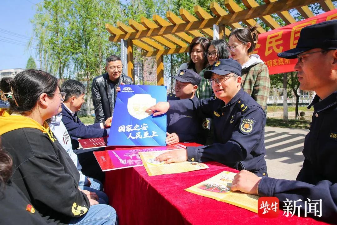4月14日,白蒲镇勇敢社区文明实践宣讲员走进古街,向辖区居民宣传国家安全知识,增强国家安全意识。(徐慧 摄 视觉江苏网)