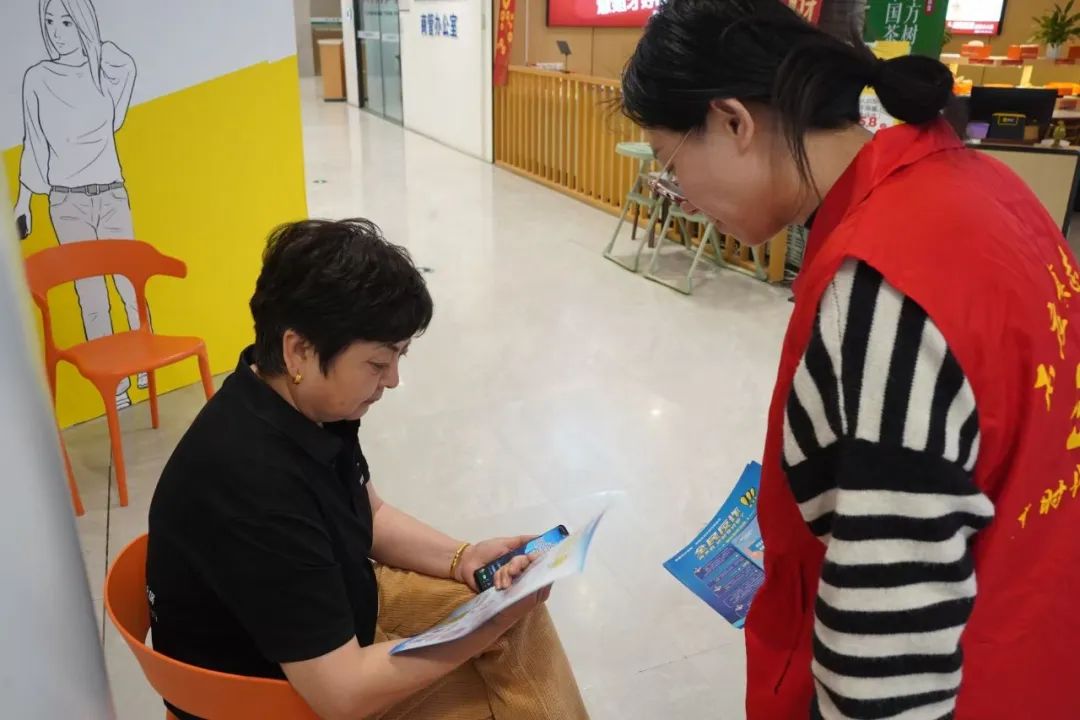 4月13日,城南街道新庄社区网格驿站内,文明实践宣讲员向群众宣传《国家安全法》相关法律法规。(人民图片/徐慧)