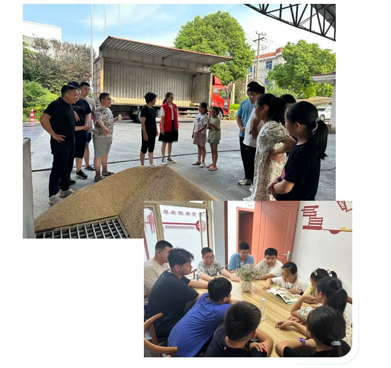 为丰富未成年人的假期生活,提升未成年人的综合素质,松杨社区举办“七彩的夏日”主题活动,以文明实践阵地为依托,通过沉浸式、互动式的体验教育,在青少年心中种下文明的种子。农家书屋的墨香氤氲中,孩子们围坐共读人物传记《一粒种子改变世界》,深入了解了“中国杂交水稻之父”袁隆平的非凡事迹;阡陌纵横的稻田成为最生动的实验室,孩子们用指尖丈量稻穗,在叶脉纹理间深入了解现代农业的基因图谱;现代大米加工厂内,从初步清理杂质,到砻谷分离稻壳,直至碾米和成品整理,孩子们逐一参观,探索农业科学的种子茁壮成长。