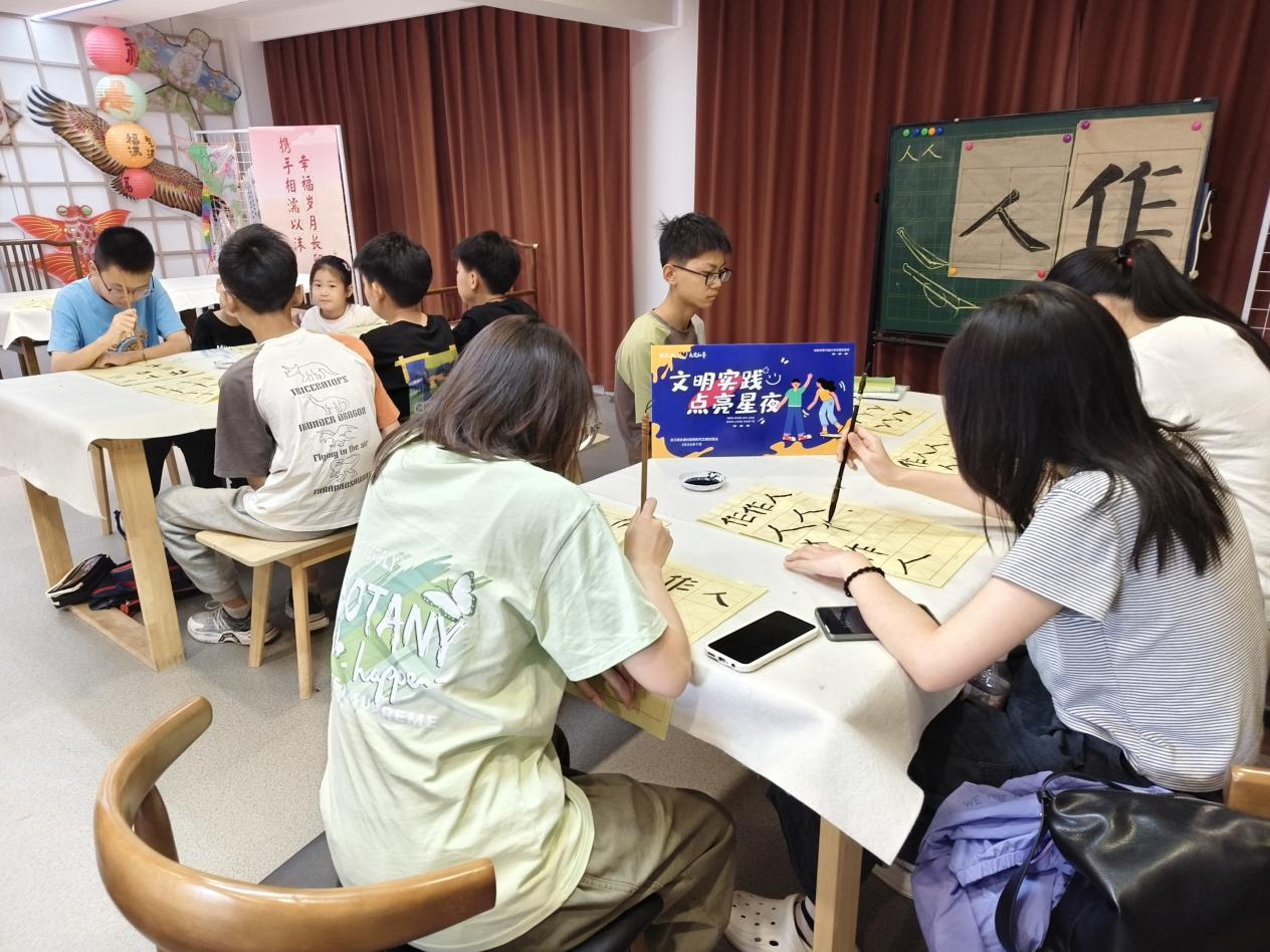 以文化人,千年技艺焕新“夜”活力。永平社区新时代文明实践站精心打造的“巷子里的非遗手札”活动,邀请居民亲手体验漆扇制作,零距离感受千年技艺在指尖流转的魅力,让非遗作品成为文化传承与文明实践的“双面绣”。永建社区新时代文明实践站则依托“笔墨时刻”书法课堂,每周六晚翰墨生香。从笔画入门到章法布局,爱好者们在切磋交流中体悟汉字风骨,推动书法艺术飞入寻常百姓家,悄然筑牢居民文化自信根基。