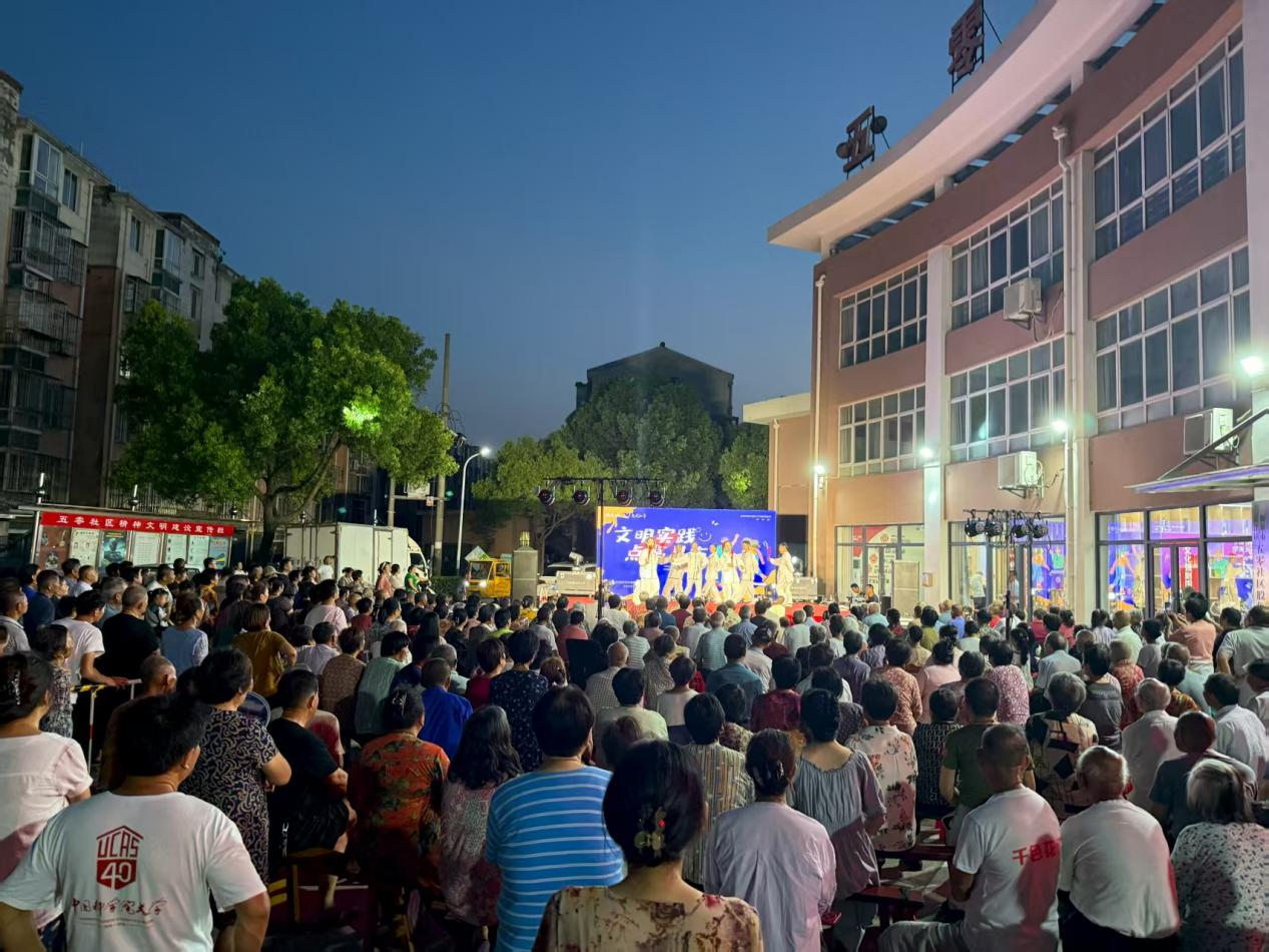 以艺载道,“身边戏”唱响文明“星”声。二百亩社区、五零社区、蔡埠庄村新时代文明实践站搭建“乐一天”夜间文艺舞台,歌舞、相声、小品等原创节目精彩纷呈,生动讲述长江镇的发展故事与百姓生活。节目巧妙融入移风易俗、邻里互助等主题,让文明理念在欢声笑语与情感共鸣中润物无声,凝聚起向上向善的社区力量。
