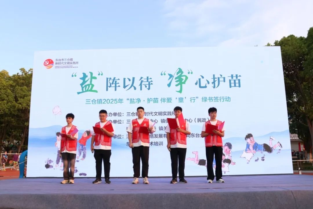 7月19日晚,盐城东台三仓镇新时代文明实践所创新服务阵地,将“盐净·护苗 伴爱‘同’行”绿书签行动的清风与“苏超”联赛的激情,一同注入充满烟火气的口袋公园。一场融合文化守护与体育狂欢的文明实践活动,在居民摇扇纳凉的欢声笑语中上演,绘就了小镇夏夜独特的文明图景。