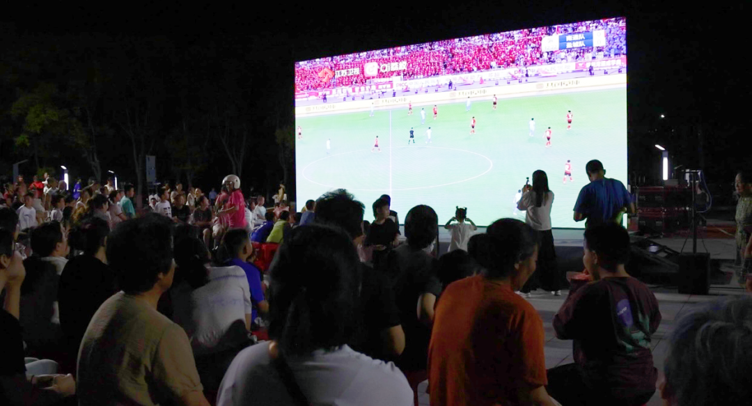 当“护苗”活动的温情余韵未散,口袋公园临时架设的大屏幕瞬间亮起,将在南通足球训练中心如皋基地的绿茵场搬到了居民眼前?!八粘奔ち业慕侵鹄卫巫プ×舜蠹业氖酉撸恳淮尉畹拇蚺浜?、惊险的门前救险,都引发此起彼伏的惊叹、欢呼与掌声。老人们摇着扇子点评战术,年轻人热血沸腾讨论赛况,孩子们虽不完全懂规则,也被现场热烈的气氛所感染,跟着大人一起鼓掌。小小的口袋公园化身公共客厅,足球的魅力将不同年龄层的居民紧密联结,点燃了小镇夏夜的热情。