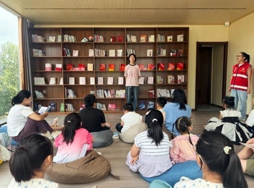 阅读活动中,各个亲子家庭围坐在一起,孩子们用稚嫩的声音讲述自己感兴趣的阅读绘本,共同沉浸在书的世界里,领略阅读的魅力,畅游在知识的海洋,现场氛围温馨而融洽。在志愿者的指导下,家长们通过指读、讲解、提问等互动方式,帮助孩子理解书籍内容,激发孩子的想象力。孩子们积极上台和大家交流读书心得,分享精彩内容与好词好句,浓浓的书香弥漫在整个活动现场。