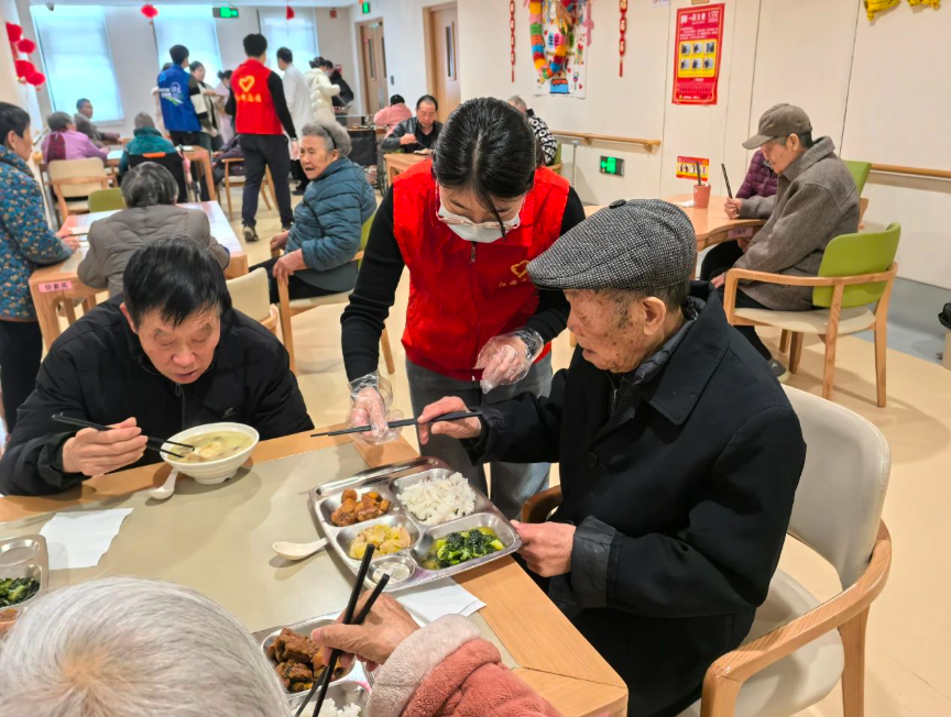 江阴-靖江工业园区江峰村新时代文明实践站组织志愿者、医务人员,走进龙信乐颐荟·龙馨园康养社区,开展敬老助老新时代文明实践活动。志愿者和医务人员分工有序,为老人量血压、测血糖,询问日常用药及身体状况,并细心记录,“一人一档”建立健康档案,为后续跟踪服务提供依据。就餐时间,志愿者们化身“助餐员”,提前为行动不便的老人整理餐桌,分装饭菜。餐后,志愿者还帮助清扫活动室、整理房间,让老人们住得更舒心舒适?!昂⒆用桥阕盼颐潜叱员吡?,就像自家孙辈一样贴心。”年过八旬的徐奶奶拉着志愿者的手连连感慨。