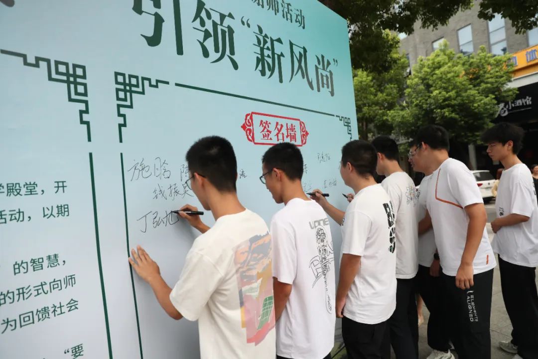 活动伊始,初、高中优秀毕业生代表在“文明谢师倡议书”上郑重签名,一句承诺,胜过千宴,一份签名,向攀比浪费说“不”,让感恩回归本真。