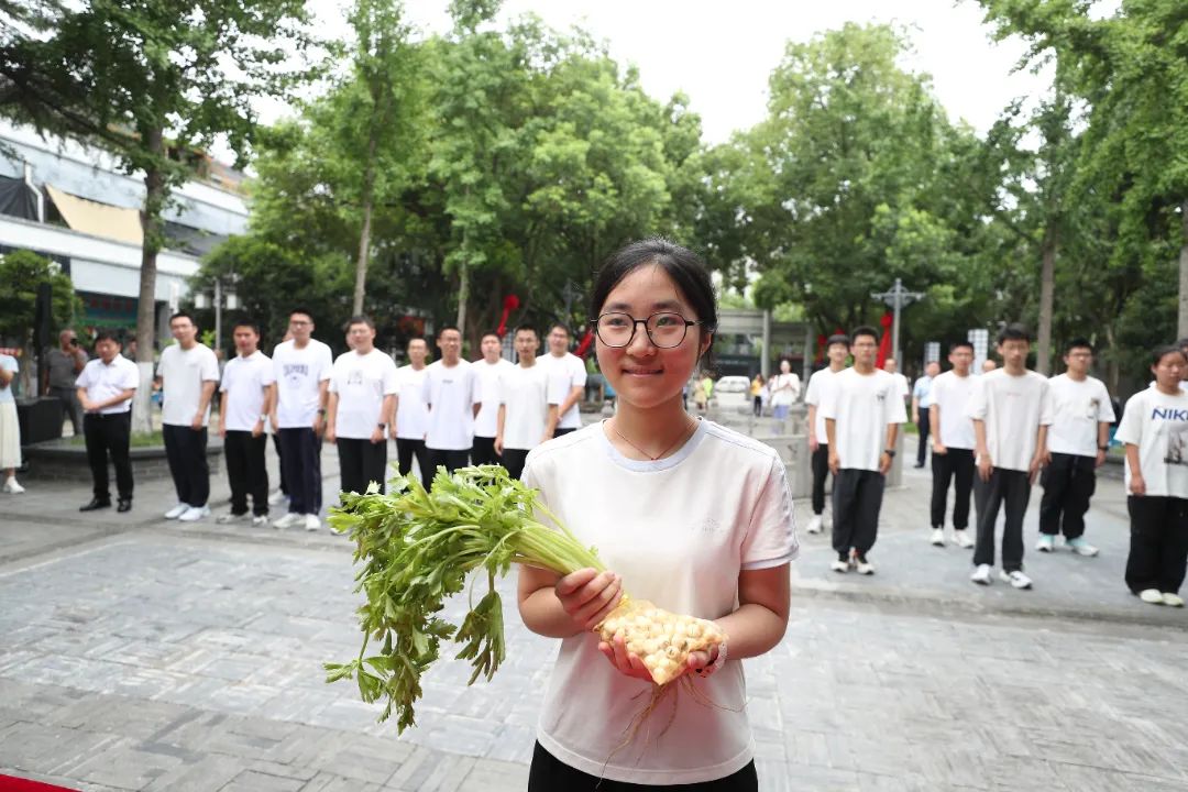 兴化特色的“束脩六礼”别具匠心——鲜肉、垛田芹菜、沙沟莲子、红豆、红枣、桂圆,分别寄托着感谢师恩、勤奋向学、心志清明等美好寓意。学子们依次向教师献礼,教师回赠寄语,古今对话间,师道尊严与育人初心相映成辉。