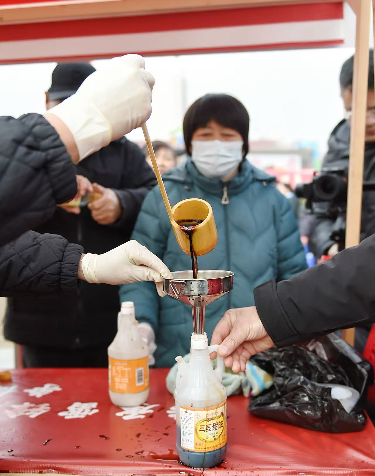 志愿者董尚辉一一接过空瓶,熟练地扬起甜油再倒入瓶中,与伙伴们配合默契,一上午下来,一缸甜油快要见底?!爸驹阜褚丫晌畹囊徊糠?,我不仅要坚持,还要带动更多人?!倍谢蕴寡?,志愿服务是一种“能量交换”,受到他的影响,家人也纷纷加入志愿者的队伍中,这令他很有成就感。