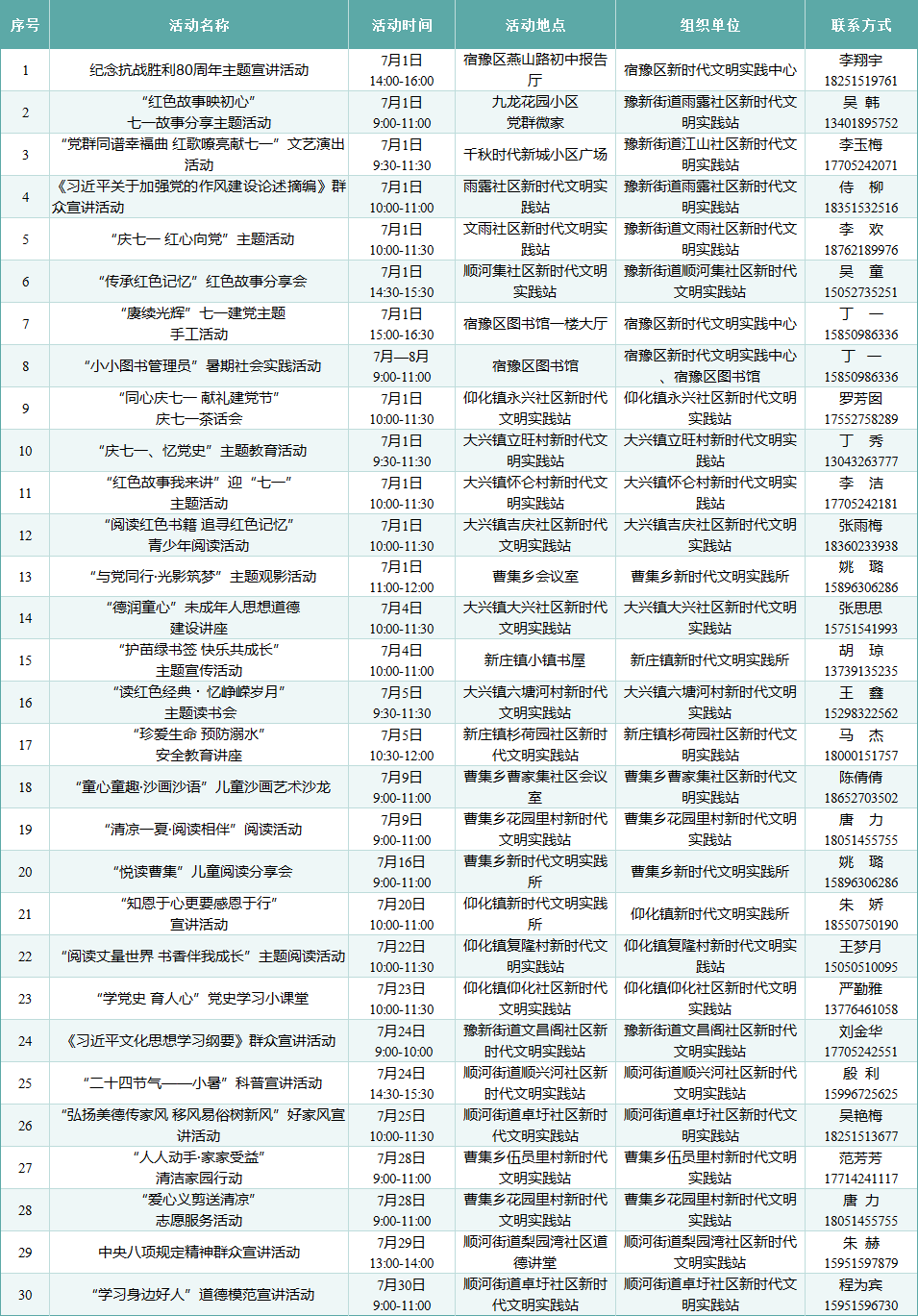@宿迁人,7月份224项重点文明实践活动,邀您一起参加