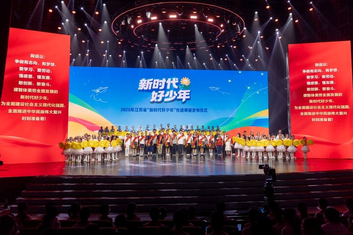 8月13日,由江苏省精神文明建设办公室、省教育厅、共青团江苏省委、省妇联、省关工委主办的2025年江苏省“新时代好少年”先进事迹发布仪式在荔枝大剧院举行,向社会推出29名(组)优秀少年儿童的先进事迹,教育引领广大青少年争当爱党爱国、勤奋好学、全面发展的新时代好少年。