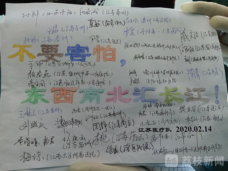 江苏医疗队部分队员签下自己的姓名,为所有患者加油