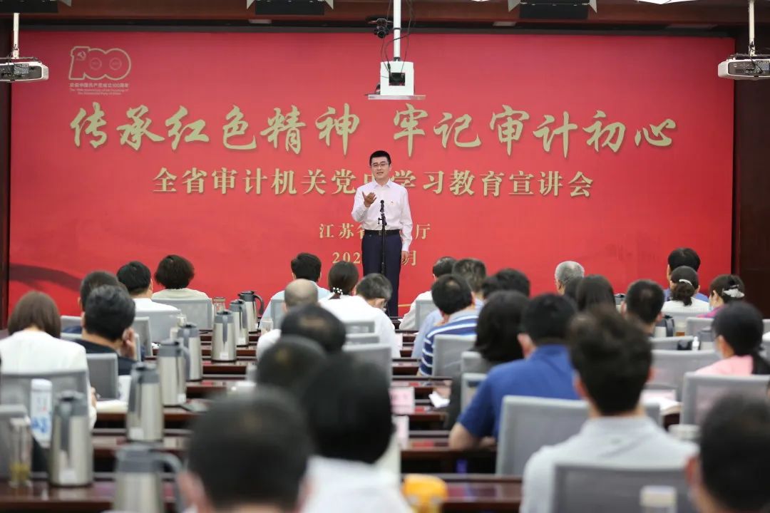 全省审计机关把学懂弄通习近平新时代中国特色社会主义思想作为首要政治任务和文明创建的重要内容,省厅构建厅党组、理论学习中心组、党支部、党员干部和青年干部“五级联学”机制。全省审计机关各级党组理论学习中心组定期开展集中学习,同时组织多形式、分层次、全覆盖的学习培训,把中国特色社会主义和中国梦宣传教育渗透到审计干部日常学习教育、综合培训、主题党日等活动中。在全省审计机关广泛开展“走进革命传统教育基地、走进工厂车间、走进基层一线、走进社区群众”系列主题活动、“沿着红色足迹学党史”系列活动;举办全省审计系统“不忘初心 牢记使命 奋力推进江苏审计高质量发展”党建强审行动论坛。组织全厅干部职工赴井冈山开展“传承红色基因 汲取信仰力量 打造审计铁军”红色教育专题培训。举办“传承红色基因牢记审计初心”全省审计系统党史学习教育宣讲会和“红心向党、青春激扬”青年审计干部学党史知党情跟党走专题汇报会,弘扬中国共产党人精神谱系,展现新时代审计人奋发向上、担当作为的良好精神风貌。各设区市审计局在每年“七一”普遍开展主题党日活动,表彰先进党支部和优秀共产党员,党组书记为全厅党员干部上专题党课。省审计厅在全省审计机关党史学习教育培训班、基层党建工作培训班、领导干部能力建设与综合素质提升高级研修班、县(市、区)审计局局长培训班中,都将学用新思想作为必修课,多形式、分层次、全覆盖进行学习培训,引导审计党员干部增强“四个意识”、坚定“四个自信”、做到“两个维护”?;窗彩猩蠹凭忠晕拿鞔唇ㄎナ?,每半月召开“双周学习会”,每季度举办“道德讲堂”,每年度举行青年说活动,市审计系统获评市文明行业。宿迁市审计局大力实施铸魂工程,通过党性锻炼、主题讲堂等有力推动社会主义核心价值观践行。