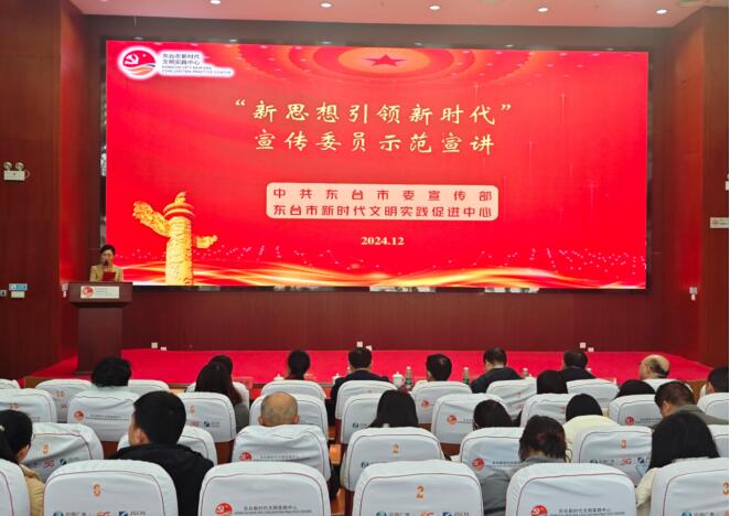 东台市委宣传部、东台市新时代文明实践促进中心在东台市新时代文明实践大讲堂开展“新思想引领新时代”学习党的二十届三中全会精神宣传委员示范宣讲活动,让全会精神直达基层,深入一线。