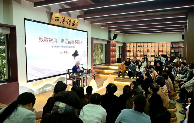 在西溪讲堂开展的音乐讲座特邀请到著名指挥家吕晓一,吕教授以《致敬经典·走近蓝色多瑙河》为题,生动的讲解让晦涩难懂的乐理知识,化作一个个曼妙的音符,从时代背景到人文精神再到演奏指挥,带领大家走近蓝色多瑙河,领略古典音乐之美。