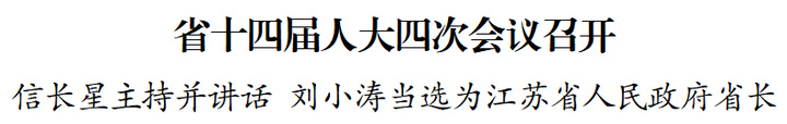 10月13日至14日,江苏省第十四届人民代表大会第四次会议在江苏大会堂召开。大会主席团常务主席、省委书记、省人大常委会主任信长星主持并讲话。